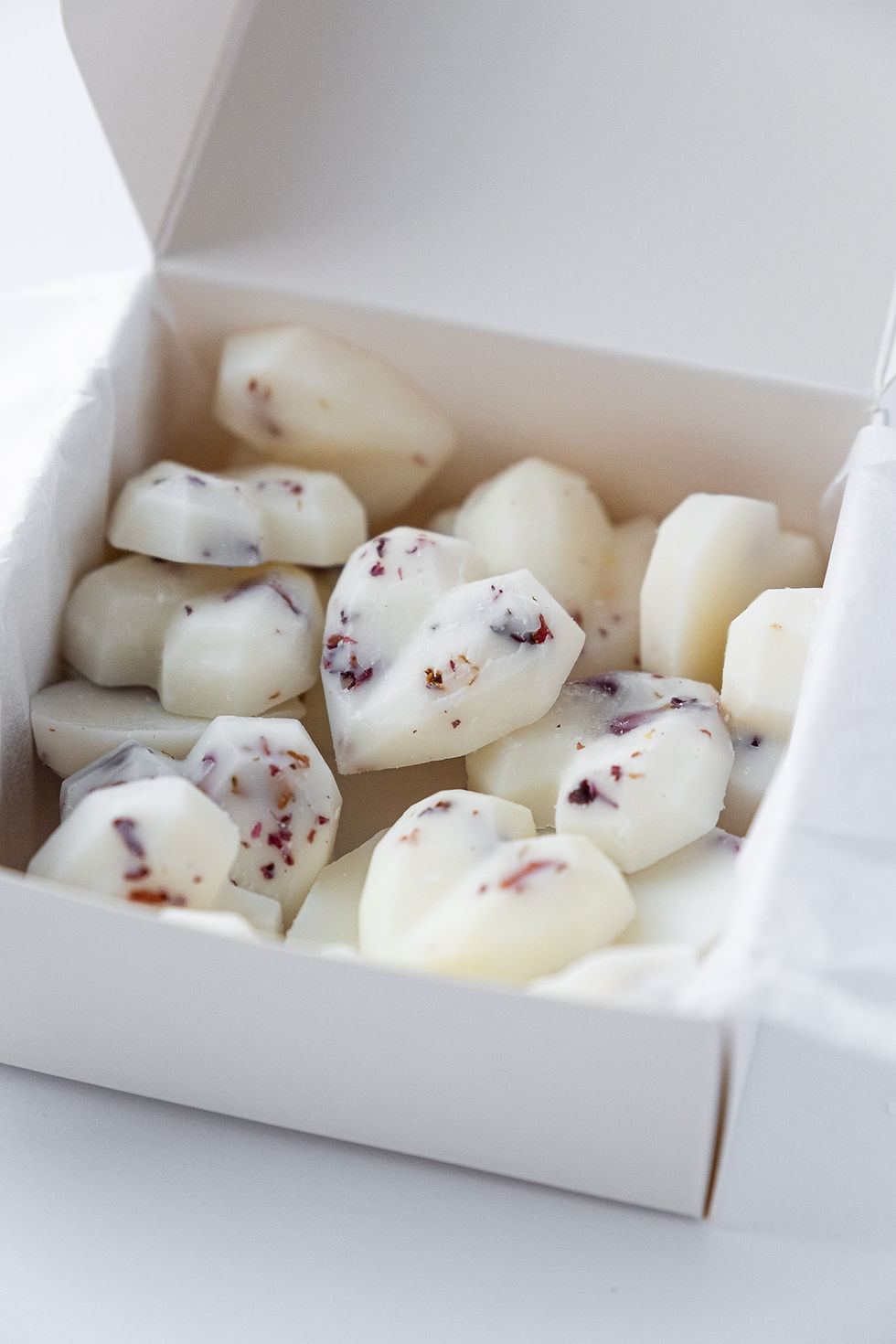 Los pastillas aromáticas de cera de soja para derretir son la mezcla de cera de soja y aceite de fragancias de alta calidad. Coloca dos o tres pastillas en tu quemador.